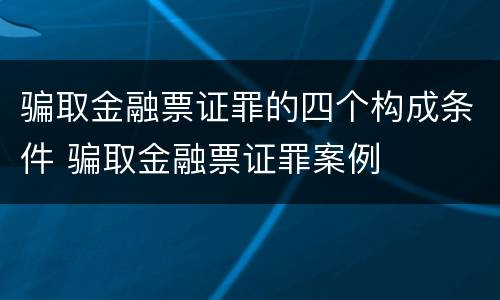 骗取金融票证罪的四个构成条件 骗取金融票证罪案例