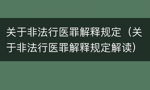 关于非法行医罪解释规定(关于非法行医罪解释规定解读)