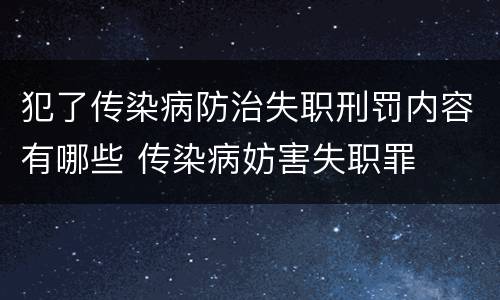 犯了传染病防治失职刑罚内容有哪些 传染病妨害失职罪