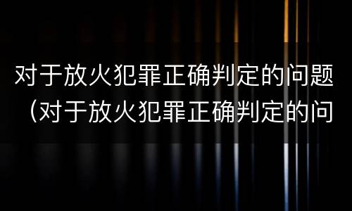 对于放火犯罪正确判定的问题(对于放火犯罪正确判定的问题有)