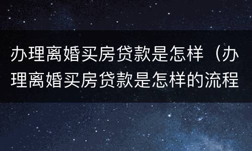 办理离婚买房贷款是怎样(办理离婚买房贷款是怎样的流程)