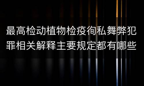 最高检动植物检疫徇私舞弊犯罪相关解释主要规定都有哪些