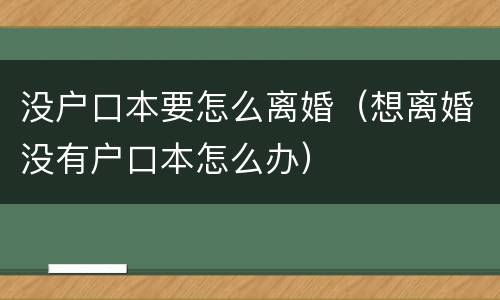 没户口本要怎么离婚(想离婚没有户口本怎么办)