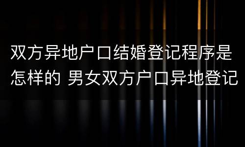 双方异地户口结婚登记程序是怎样的 男女双方户口异地登记结婚