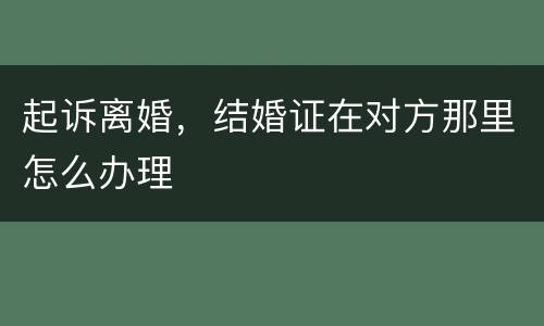 1、起诉离婚结婚证在对方手里也是可以正常进行办理的,结婚证明可以到民政局进行调取2、法律依据:《中华人民共和国民法典》第一千零七十九条夫妻一方要求离婚的,可以由有关组织进行调解或者直接向人民法院提起离