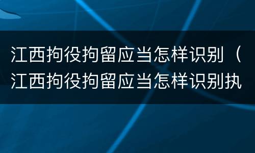 江西拘役拘留应当怎样识别(江西拘役拘留应当怎样识别执行)