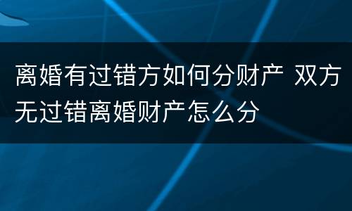 离婚有过错方如何分财产 双方无过错离婚财产怎么分
