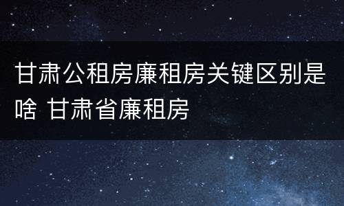 甘肃公租房廉租房关键区别是啥 甘肃省廉租房