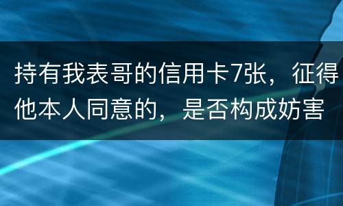 持有我表哥的信用卡7张,征得他本人同意的,是否构成妨害信用卡管理罪