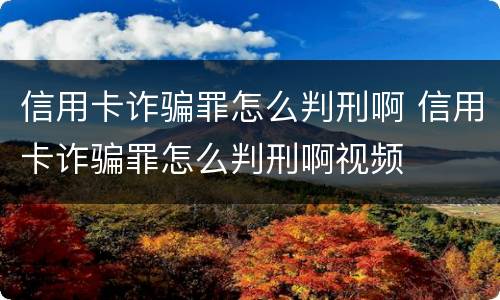 信用卡诈骗罪怎么判刑啊 信用卡诈骗罪怎么判刑啊视频