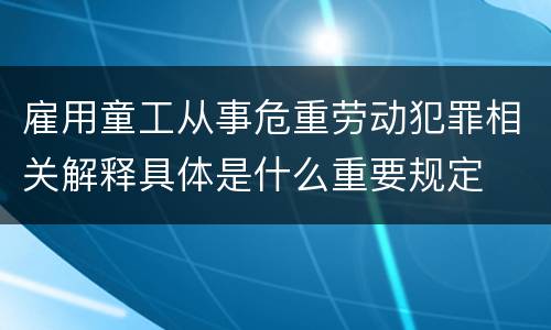 雇用童工从事危重劳动犯罪相关解释具体是什么重要规定
