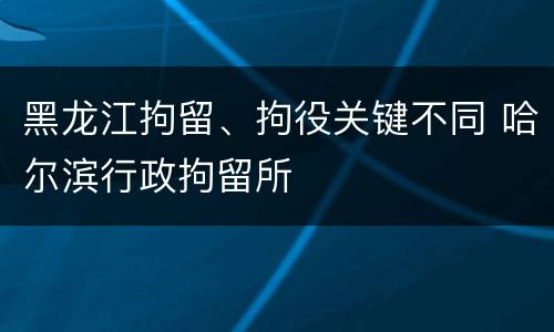 黑龙江拘留、拘役关键不同 哈尔滨行政拘留所
