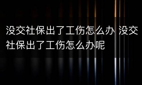 没交社保出了工伤怎么办 没交社保出了工伤怎么办呢