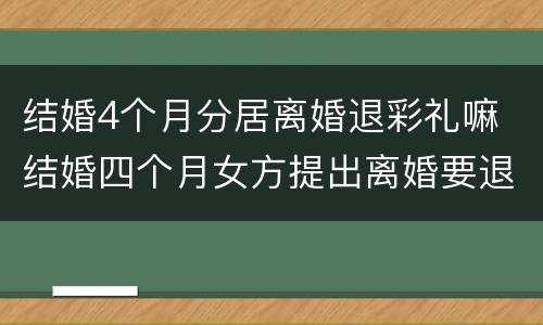 结婚4个月分居离婚退彩礼嘛 结婚四个月女方提出离婚要退彩礼吗