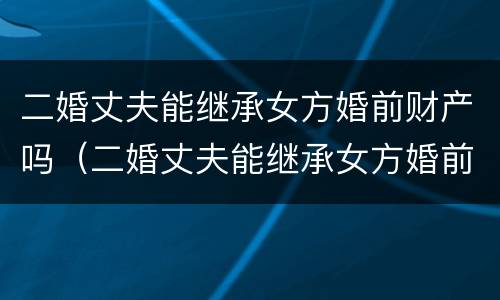 二婚丈夫能继承女方婚前财产吗(二婚丈夫能继承女方婚前财产吗视频)
