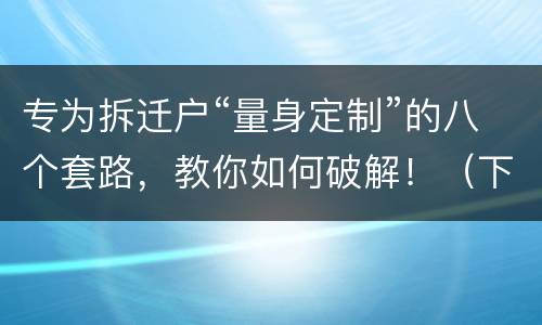 专为拆迁户“量身定制”的八个套路,教你如何破解!(下)
