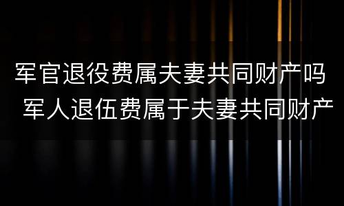 军官退役费属夫妻共同财产吗 军人退伍费属于夫妻共同财产吗?