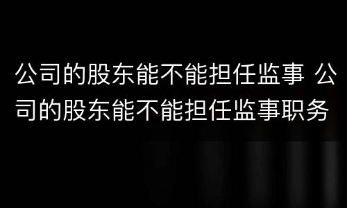 公司的股东能不能担任监事 公司的股东能不能担任监事职务