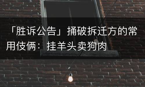 「胜诉公告」捅破拆迁方的常用伎俩:挂羊头卖狗肉