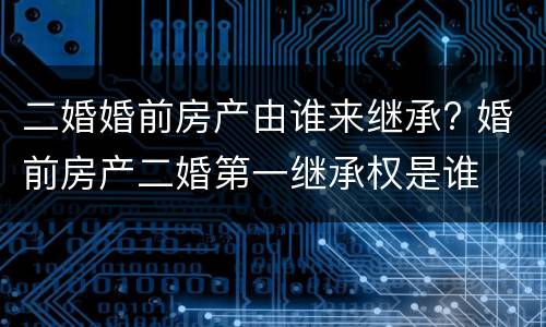 二婚婚前房产由谁来继承? 婚前房产二婚第一继承权是谁