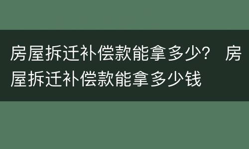 房屋拆迁补偿款能拿多少? 房屋拆迁补偿款能拿多少钱