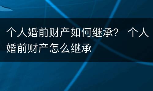 个人婚前财产如何继承? 个人婚前财产怎么继承