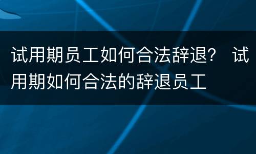 要在试用期将员工合法辞退除非是员工很明显在试用期期间不符合原来公司的用人要求或者是劳动者在这个试用期的期间违反了公司的相关管理或者是根本就没有好好工作存在着失职的情况,并且是给用人单位造成了具体的损失