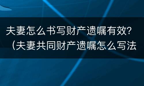 夫妻怎么书写财产遗嘱有效?(夫妻共同财产遗嘱怎么写法律才有效)