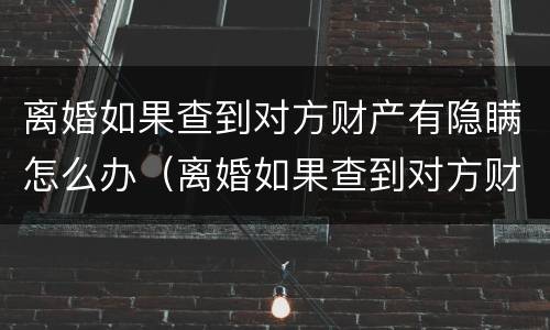 离婚如果查到对方财产有隐瞒怎么办(离婚如果查到对方财产有隐瞒怎么办呢)