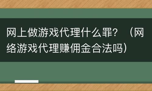 网上做游戏代理什么罪?(网络游戏代理赚佣金合法吗)