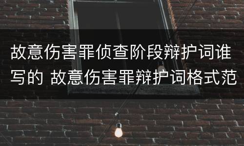 故意伤害罪侦查阶段辩护词谁写的 故意伤害罪辩护词格式范文