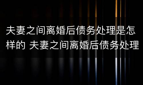 夫妻之间离婚后债务处理是双方当事人协商确定或者由人民法院来判决。根据我们国家《民法典》当中的规定,离婚的时候如果确实是属于夫妻共同生活所负担的,一些债务应当共同的承担的,当然了,也可以双方当事人在协商