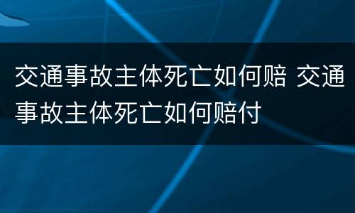 交通事故主体死亡如何赔 交通事故主体死亡如何赔付