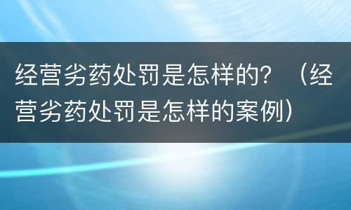 经营劣药处罚是怎样的?(经营劣药处罚是怎样的案例)