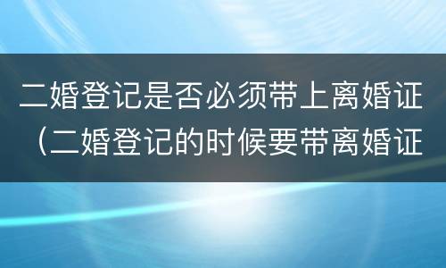 二婚登记是否必须带上离婚证(二婚登记的时候要带离婚证么)