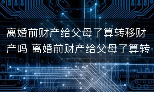 离婚前财产给父母了算转移财产吗 离婚前财产给父母了算转移财产吗怎么办