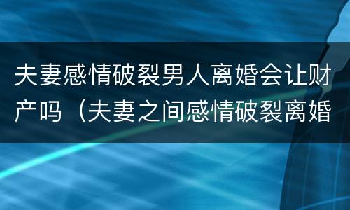 夫妻感情破裂男人离婚会让财产吗(夫妻之间感情破裂离婚)