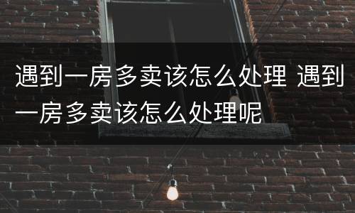 遇到一房多卖该怎么处理 遇到一房多卖该怎么处理呢