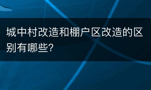 城中村改造和棚户区改造的区别有哪些?
