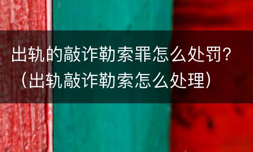 出轨的敲诈勒索罪怎么处罚?(出轨敲诈勒索怎么处理)
