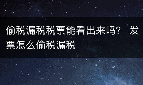 偷税漏税税票能看出来吗? 发票怎么偷税漏税