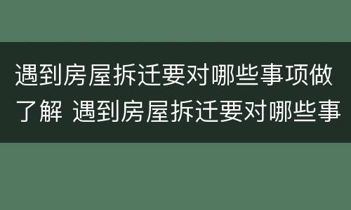 遇到房屋拆迁要对哪些事项做了解 遇到房屋拆迁要对哪些事项做了解处理