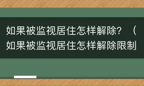 如果被监视居住怎样解除?(如果被监视居住怎样解除限制)