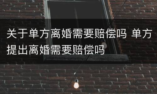 关于单方离婚需要赔偿吗 单方提出离婚需要赔偿吗