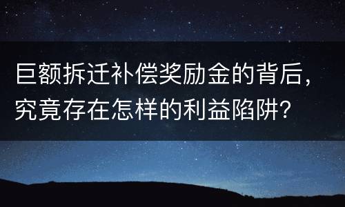 巨额拆迁补偿奖励金的背后,究竟存在怎样的利益陷阱?