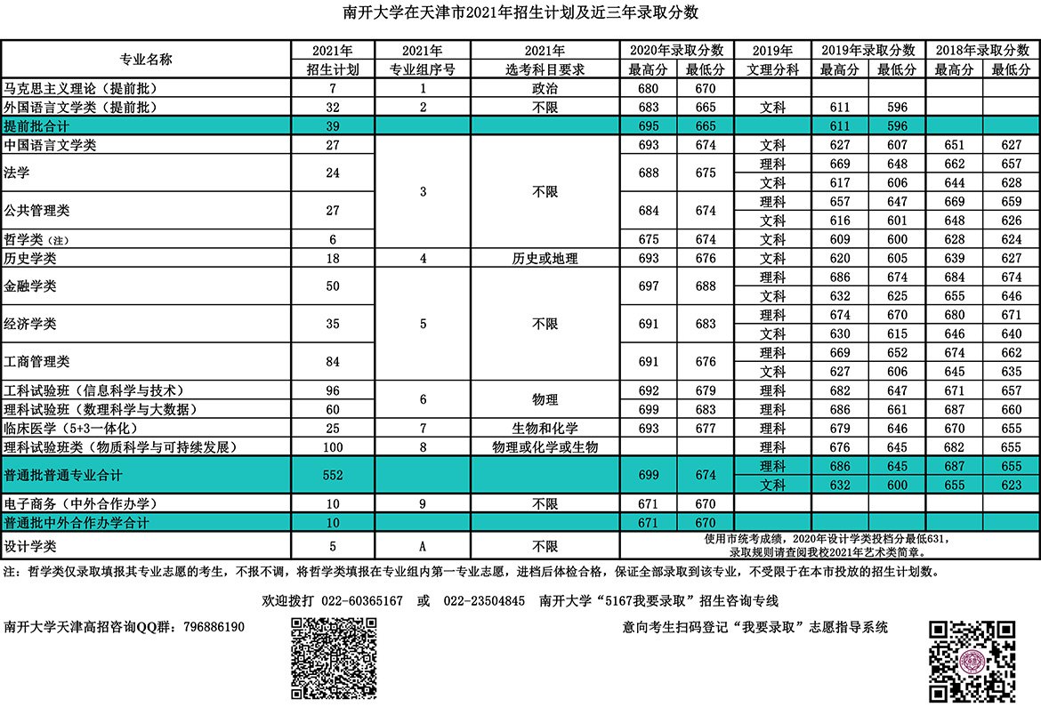2021南开大学在天津招生计划+近三年录取分数