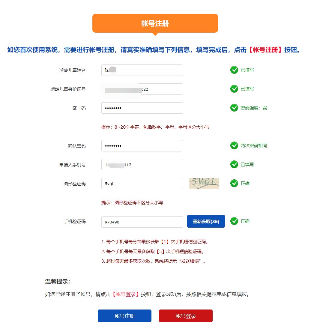 第五步:填写儿童信息,选择报名志愿提交即可