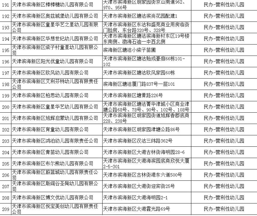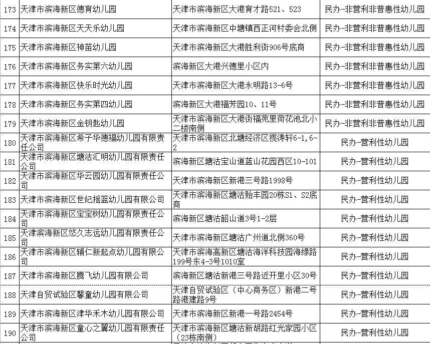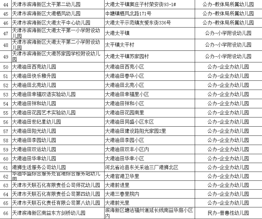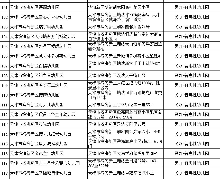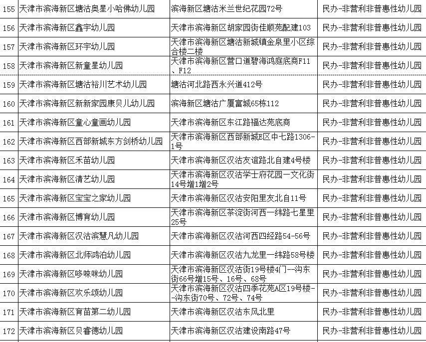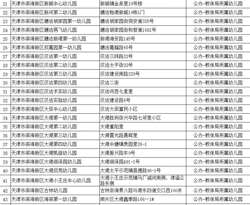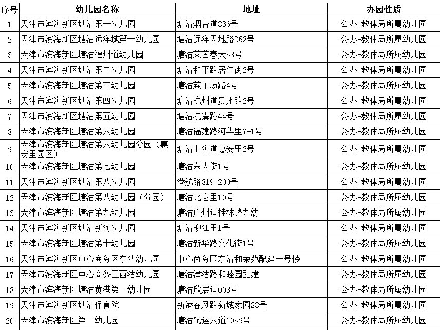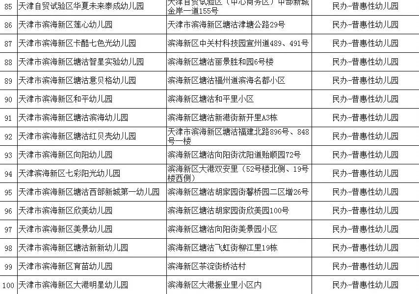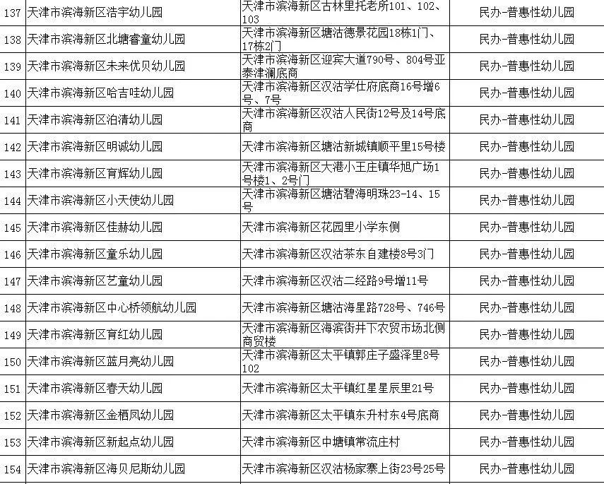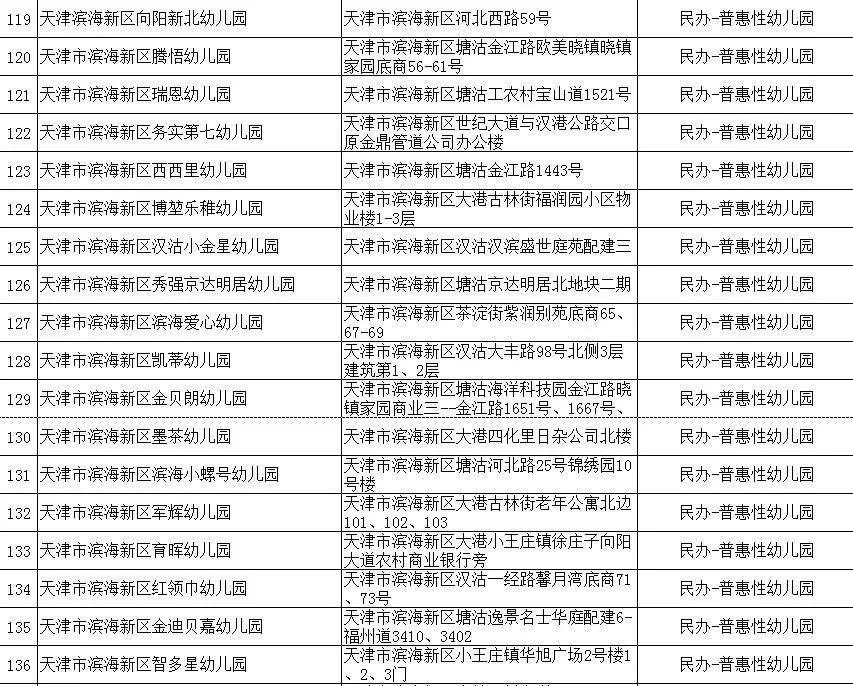 2020年天津市滨海新区具备招生资格的幼儿园名单(附地址+公办/民办)