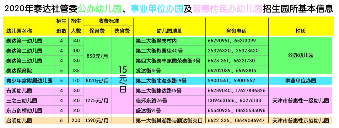 >>>2020年泰达社管委公办幼儿园事业单位办园及普惠性民办幼儿园招生园所基本信息