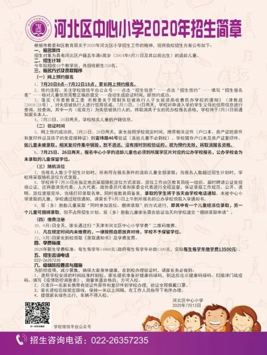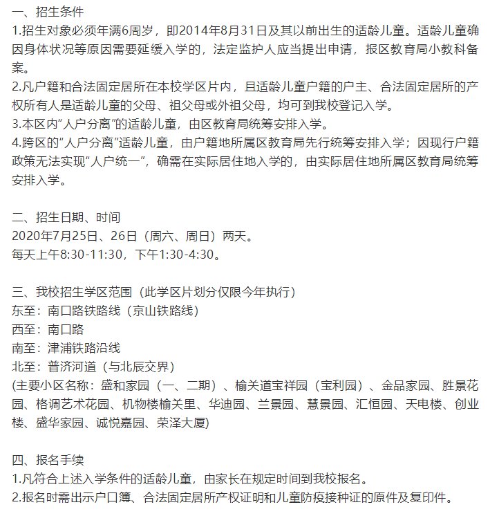 2020年天津市河北区小学入学招生简章信息汇总